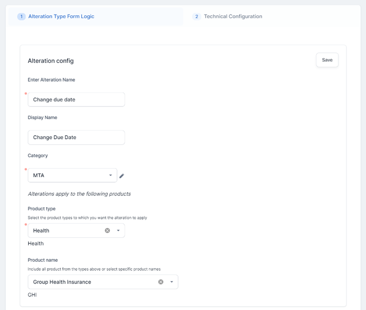 In the Alteration Type Form Logic tab, fill in the following fields in the Alteration Config section: