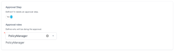 In the Approval Step section, check to define if the alteration needs an approval step. If you check the field, the Approval roles section is unfolded, where you can define who is doing the MTA approval.
