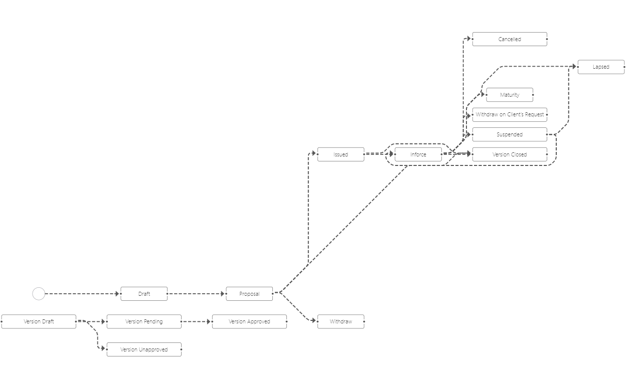Version Approved: When the version reaches this status, immediately after, the master policy goes to the corresponding final status (can be for example InForce or Cancelled);