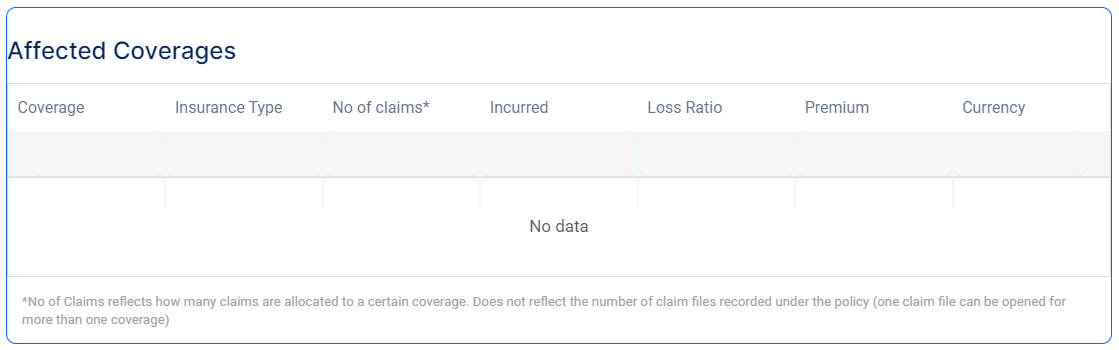 Affected Coverage: Keeps and reflects the tabular view for claims recorded at coverage level.