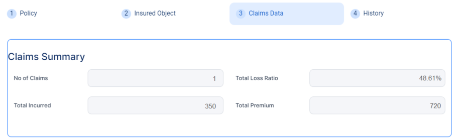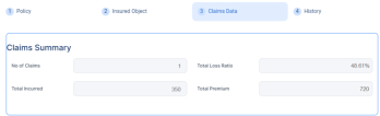 In order to view the loss ratio, access a policy and click on the Claims Data tab.