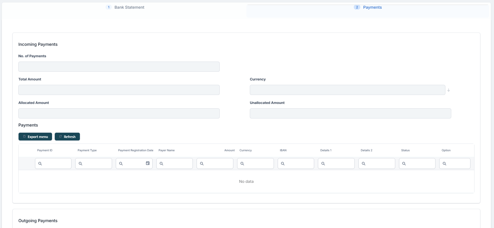 To pay the installment, go to Main Menu > Billing & Collection > Bank Statements. Here, the list of all the bank statements is displayed.