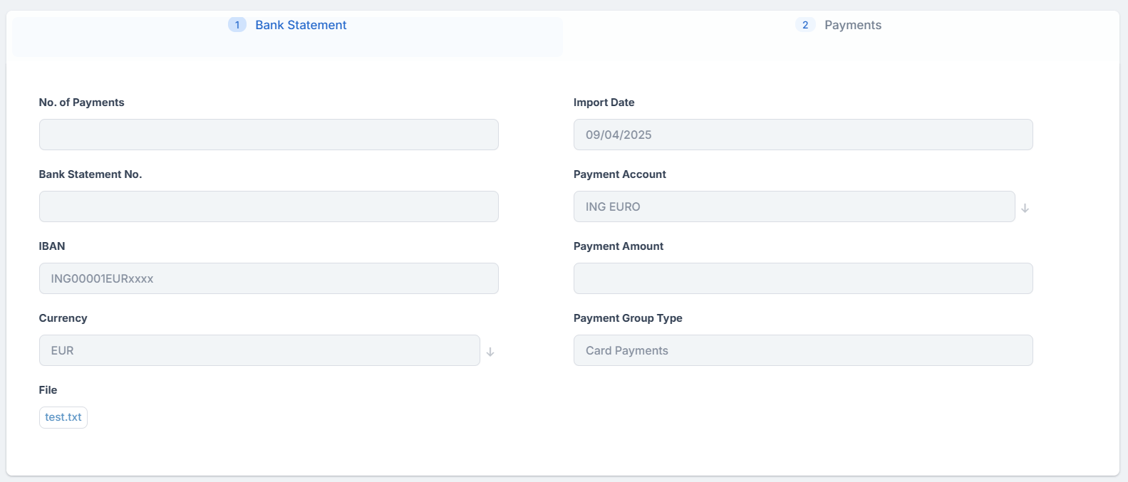 Click Import Data. The record is now registered, and the data from the bank statement file is displayed.