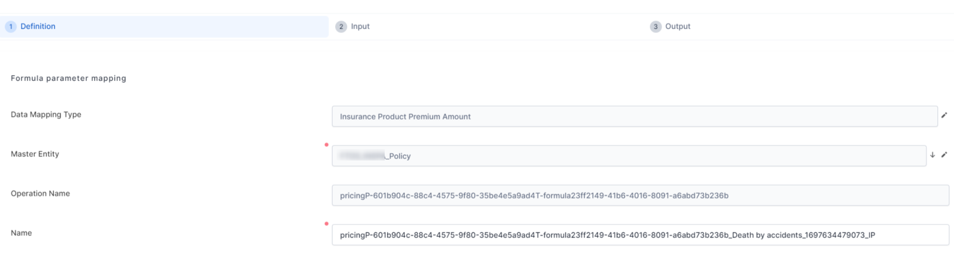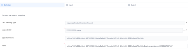 On the Input tab, continue with mapping the Input parameters of the formula with the required attributes of the selected master entity.