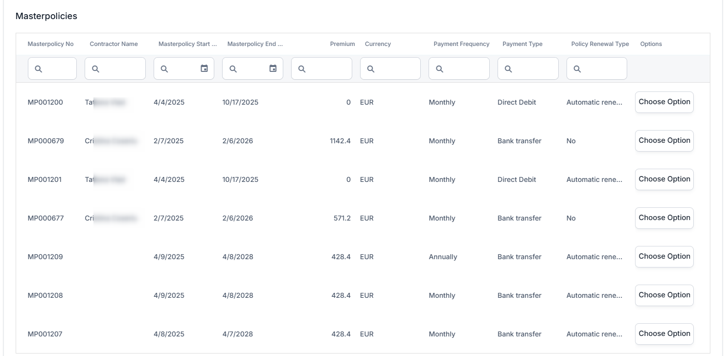 Click Choose Option next to the masterpolicy that you want to alter.