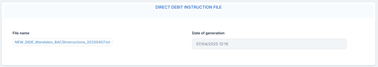 BACS Payment Schemes Limited, previously known as Bankers' Automated Clearing System, is responsible for the clearing and settlement of UK automated direct debit and BACS Direct Credit and the provision of third-party services. system, compliant with the BACS standardized .txt file format. This section holds all the files containing the instructions for the activation of direct debit mandates generated by Billing & Collection solution.