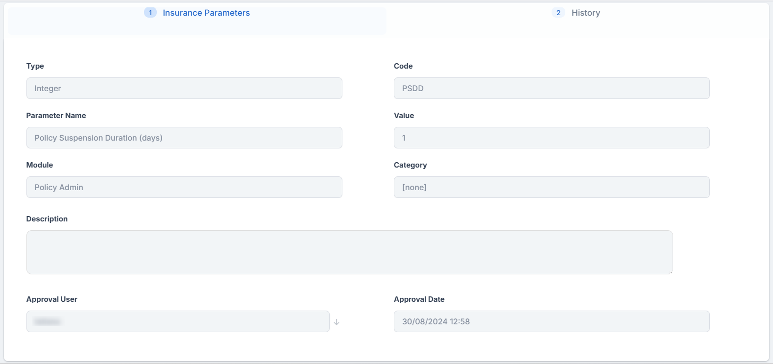 Click Save and Close. The new version is now available for approval in the History tab of the parameter record.
