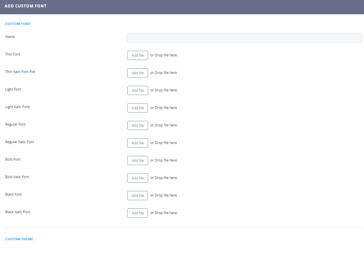 In the Name field, provide a unique name for your custom font and based on the system fonts that you want to customize, drag and drop the new fonts as needed.