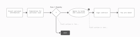 - Click on a step to see the UI configurations or the rule for flow control. Configure to add a step or an action or a transition.