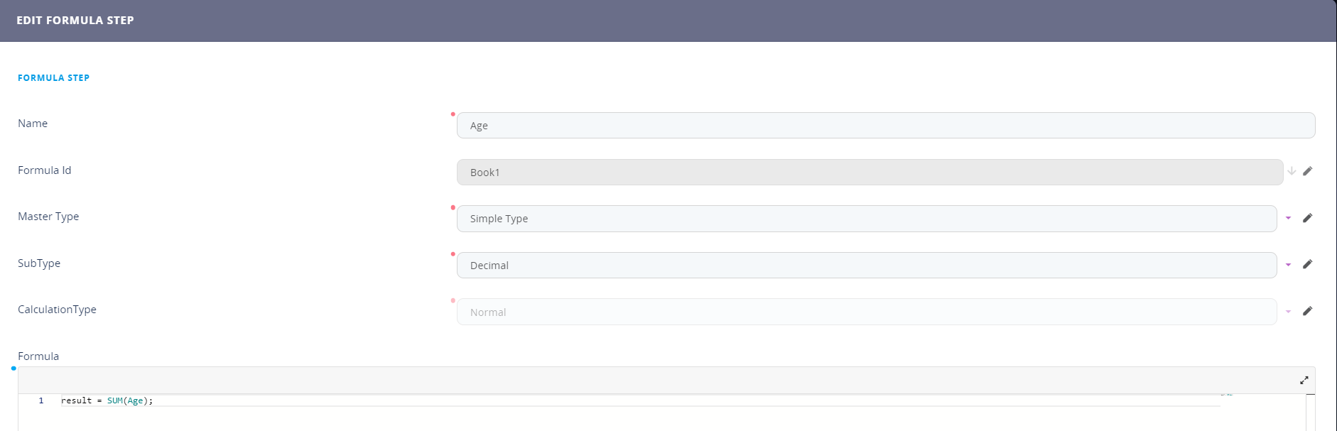 - Enter the expression for the formula step in the Formula field. For details, see Formula Editor.