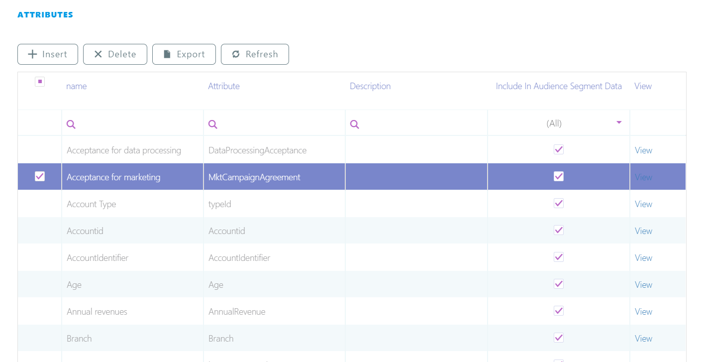 The alias is used by the system to distinguish between various records; therefore, providing a unique alias for all selected attributes is mandatory. Do not use the same alias name for two attributes of the same or different entities. For example, you should not use the "Mobile" for an attribute existing on the entity "Account" and the "Mobile" alias for an attribute on the entity "Campaign".