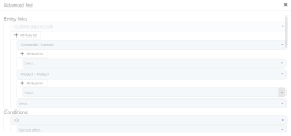 OR – to apply multiple conditions when at least one condition needs to be met.You can apply multiple conditions by using as many logical operators as you need. Once you select one, another logical operator field will be displayed beneath the first one, and so on. - Select the entity on which the condition is to be applied.NOTEAfter selecting an entity, the Attribute select field will be displayed below the selected entity.