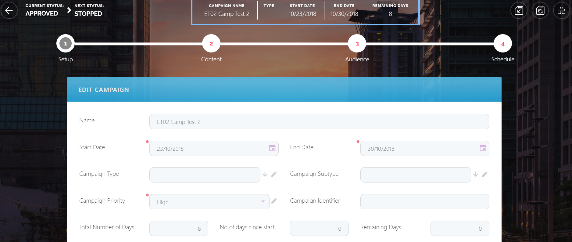The figure below shows how the campaign header items are displayed in the Digital Experience Portals:
