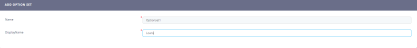 Field Description Name The option set item name which will be used by the system. Display Name The option set name which will be displayed in the user interface.