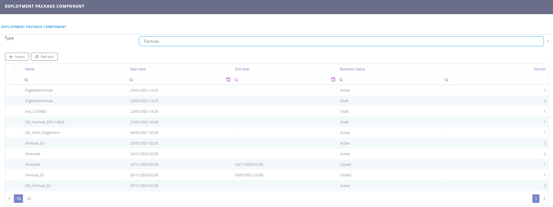 When creating a package to be exported from the current environment to another environment, the digital actor is going to select the formula version to be included in the deployment package, regardless of its status: