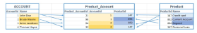 The many-to-many relationship is provisioned in the database and becomes visible in the user interface. Table Product_Account will be the link table between Account and Product.
