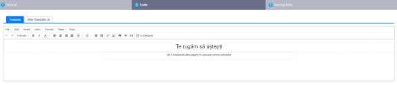 In the Code section, click the After Generate Js tab and provide the JavaScript code which defines the digital journey (redirect users to a specific data form or view, generate custom filtered views, add buttons which trigger specific actions).