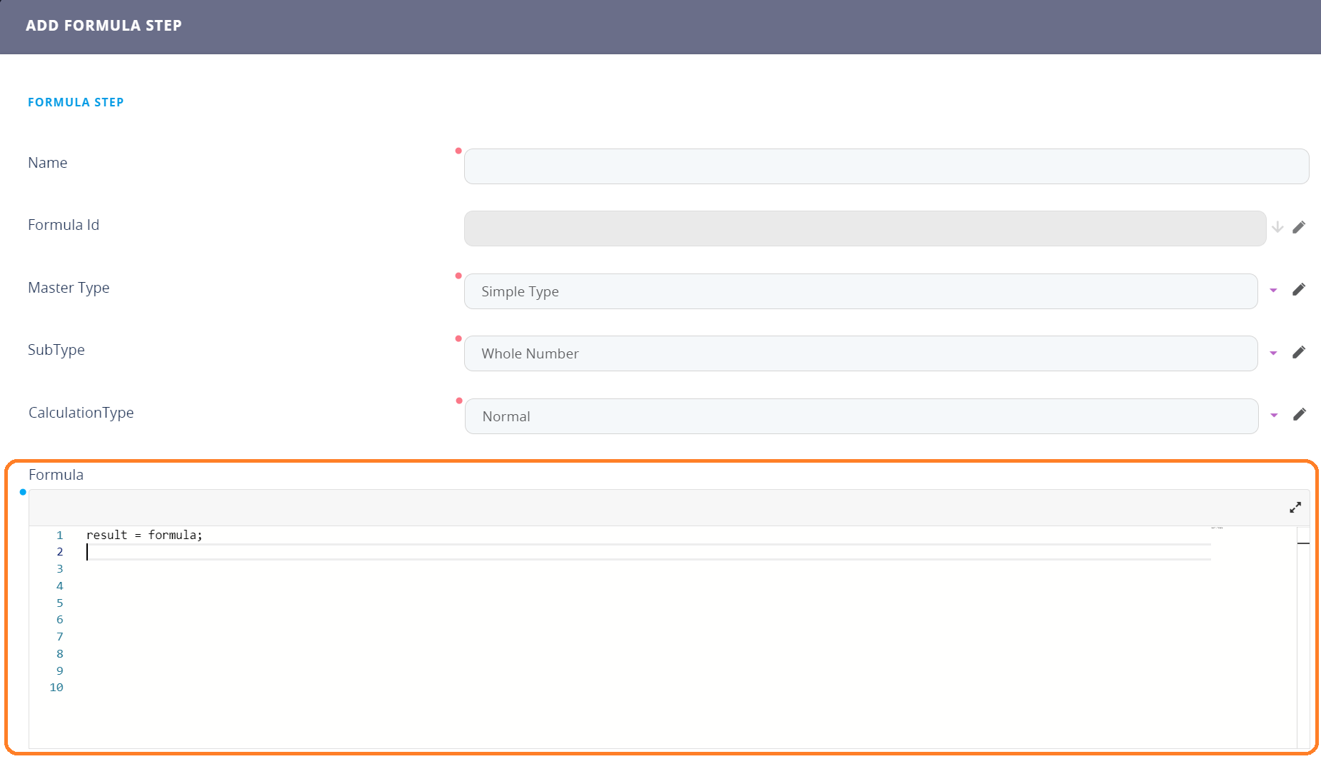 The FintechOS Formula Editor is a complex tool found in the Studio. It is the place where a user writes an actual mathematical expressions and calculations. The FintechOS Formula Editor is found at the bottom of the “Add/Edit formula step” form.