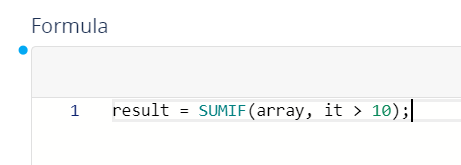 Adds up the cells in a specified range that meet a certain condition. SUMIF can evaluate only a single criteria. “it” is a mandatory term, standing for “item” of an array, for all Filter Expressions in all formulas which evaluate an expression. |