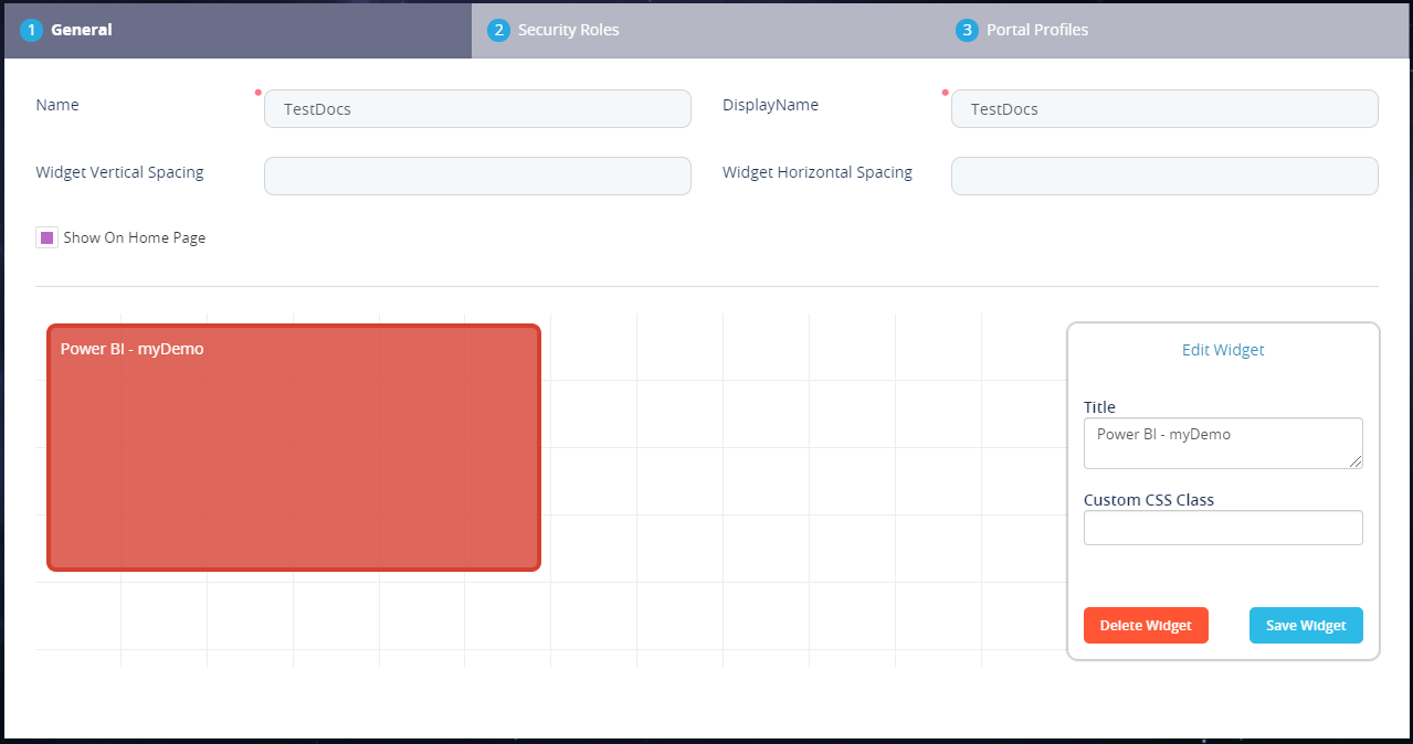 - In the Add Widget area, from the first drop-down, select Power BI Report.