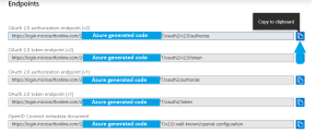 - In the list, search for the OAUTH 2.0 authorization endpoint regardless the version, and click the Copy to clipboard icon corresponding to the endpoint.