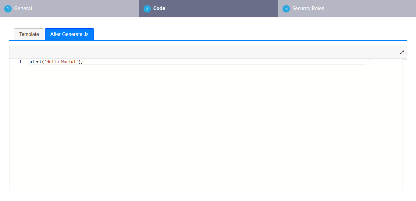 The code in the After Generate Js tab is executed after the flow's HTML code is rendered.