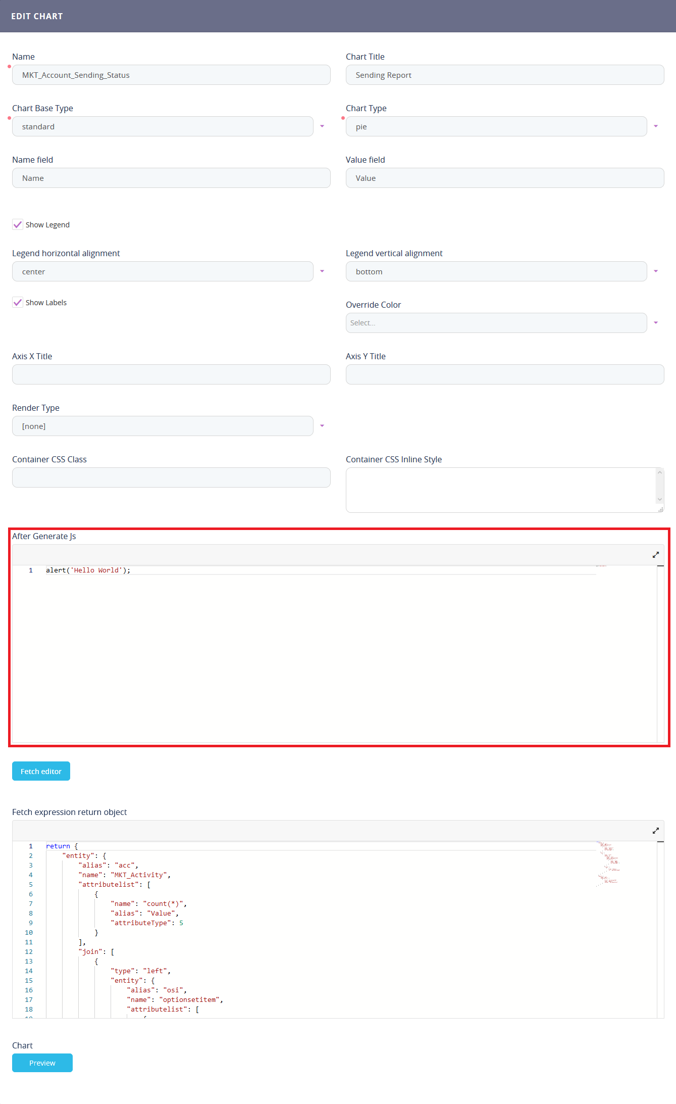 In the chart editing windows, there is a section called After Generate Js where you can add client code that is executed when the chart is rendered.