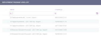 To view the log of a deployment package, from the menu, click DevOps > Deployment Package Logs. The Deployment Package Logs List page opens.