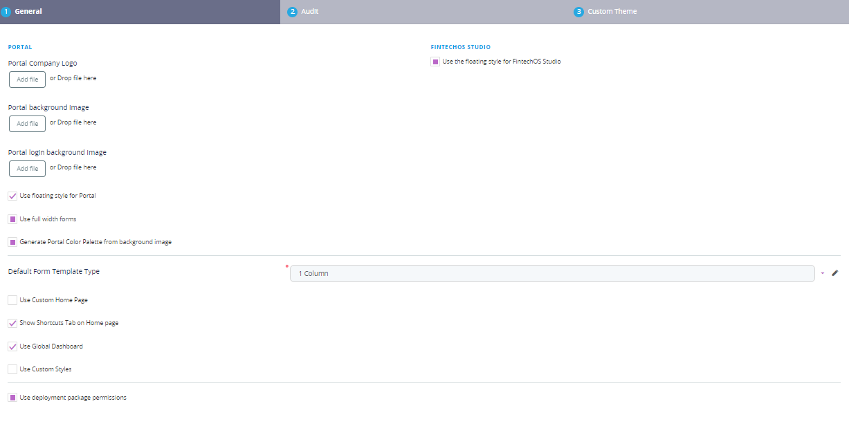- Set the transparent top menu bar and a floating feeling for all elements by ticking the Use floating style for Portal checkbox.