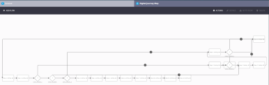 The advantage is the easy navigation between steps. By visualizing the flows and each step, it is straightforward to build digital journeys with several flows which have transitions between them. Rules are too shown on the map to visualize the whole process.