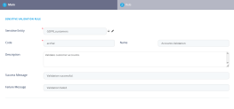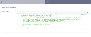- In the Rule tab specify the expression of the validation rule. The expression must return true in case of a successful validation or false if the validation fails.