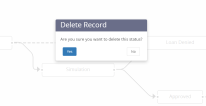To delete a workflow status, from the Design Area, select the status and in the Details panel click Delete. A confirmation dialogue appears. Click Yes to confirm deletion.