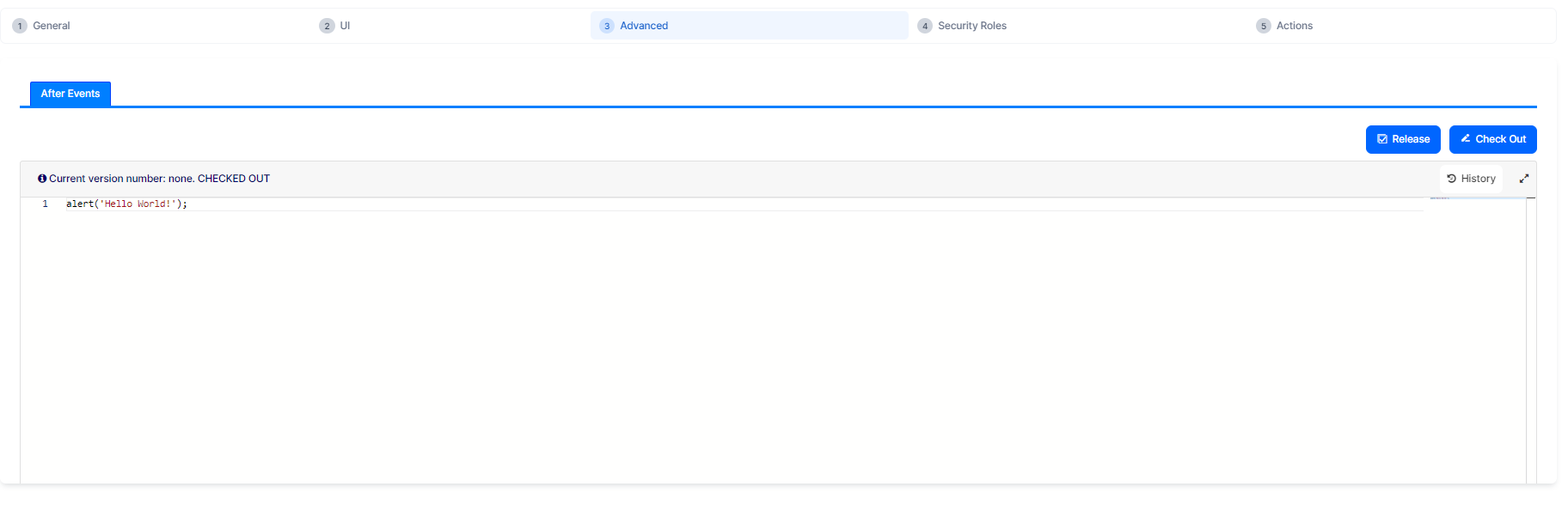 In FintechOS Studio, you can attach client-side scripts in multiple places within forms, flows, and views. The script's location determines when the code is executed, for instance after a view is loaded, before a form is displayed, between two form steps, etc.
