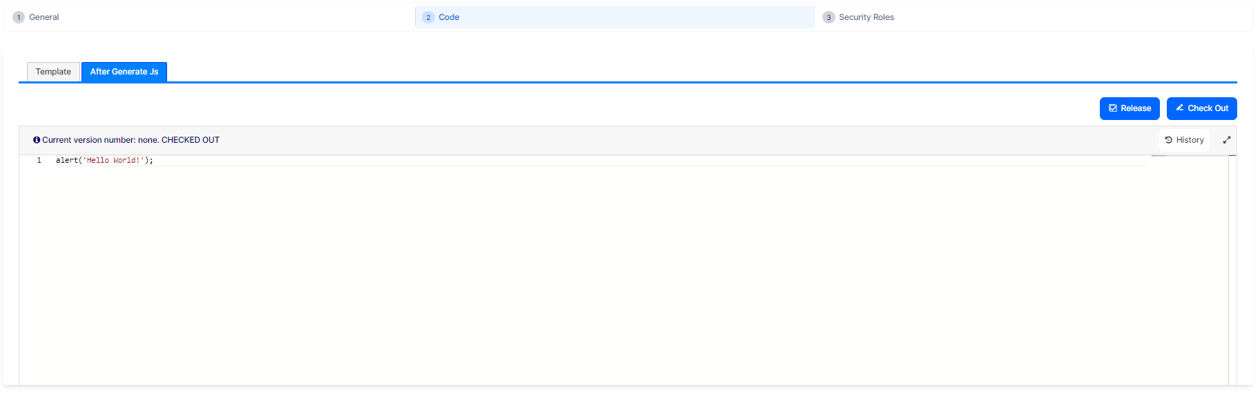 The code in the After Generate Js tab is executed after the flow's HTML code is rendered.