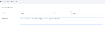 - Sensitive Context - The applicable Sensitive Context And Sensitive Data.