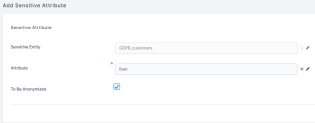 Only attributes with sensitive types can be searched in data anonymization requests. - To Be Anonymized - Check to indicate that, if a sensitive entity record is subject to data anonymization, this attribute will be anonymized in accordance with its data type: