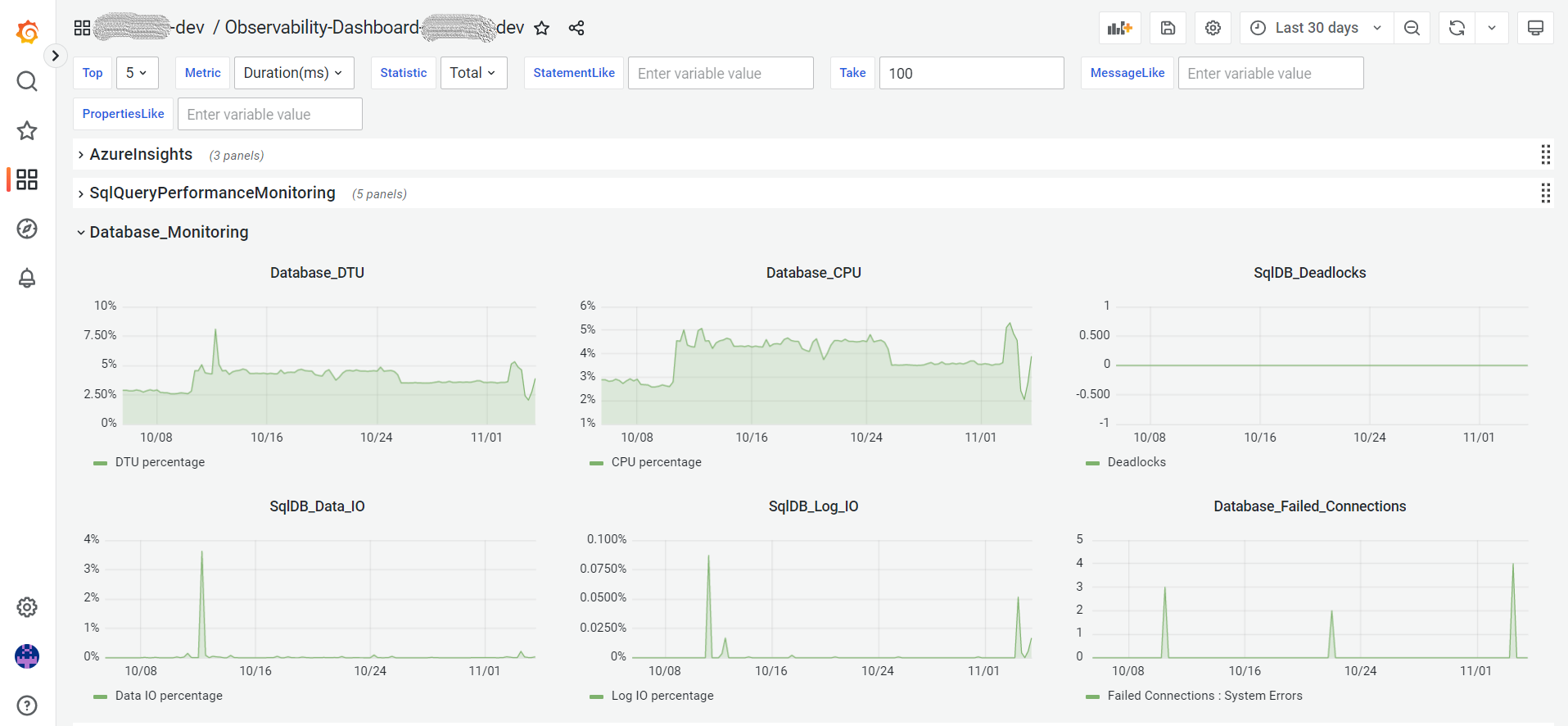 With v.22.1.4, FintechOS incorporates Grafana into the observability solution. Grafana is an open-source analytics & monitoring platform, which allows users to see their data in charts and graphs that are aggregated into one (or multiple) dashboard(s) for easy interpretation and understanding. Grafana includes built-in support for Azure Monitor data source, useful when monitoring the FintechOS - Azure infrastructure services. Data is gathered from all Azure resources and FintechOS applications, and the entire set of Azure Monitor and Grafana features enable you to monitor application performance.