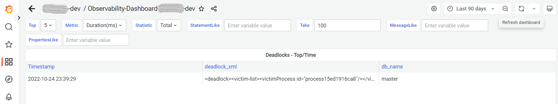 Below are the various panels displayed in Grafana for a production environment, with time intervals ranging from hours to the last three months.