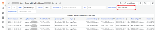 TraceRoll - Message/Properties/Take/Time , AppRequests - Take/Time