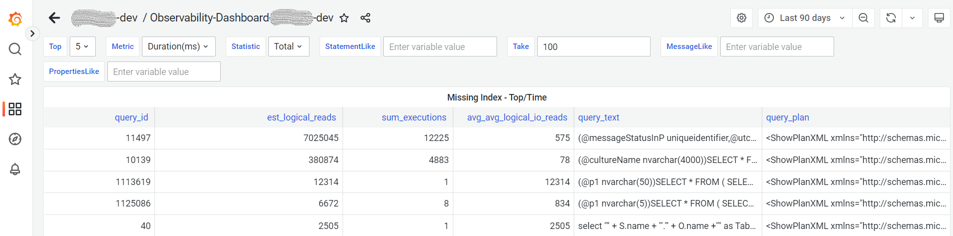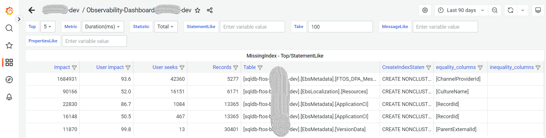 MissingIndex - Top/StatementLike , Missing Index - Top/Time
