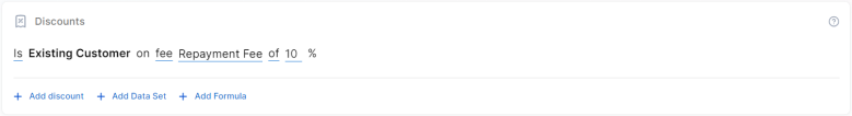 3. Add a formula to define discounts with more advanced conditions based on mathematical expressions, data sets, and other inputs. You can add more formulas, one for each pricing item. For more details on how to create formulas in Product Designer, see Product Formulas.