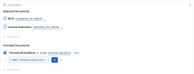 Documents that the applicant must provide in order to verify identity, income, product eligibility, etc. To add a required document: