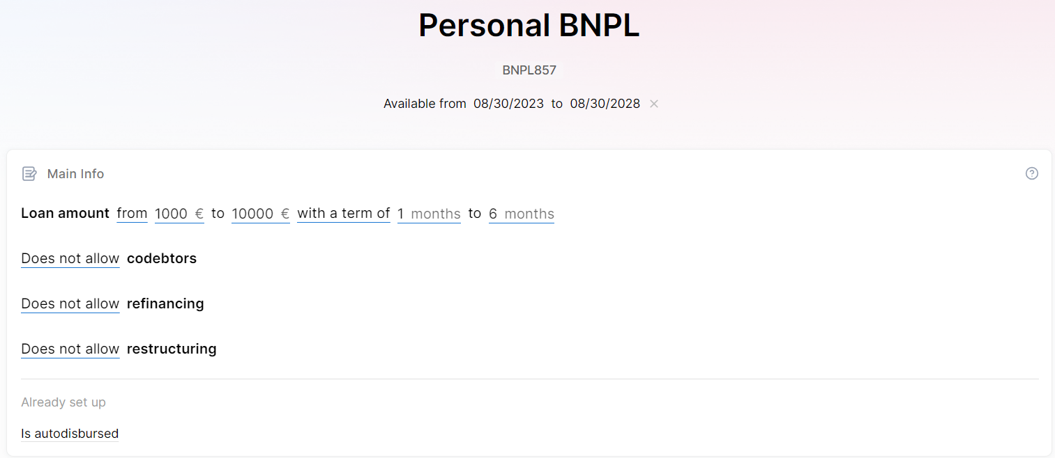 Buy now, pay later (BNPL) is a type of short-term financing that allows consumers to make purchases and pay for them over time, usually with no interest. Use the Product Factory in the FintechOS Platform to create a BNPL loan product.