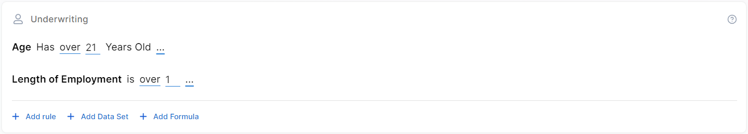 There are three ways to add Underwriting rules: