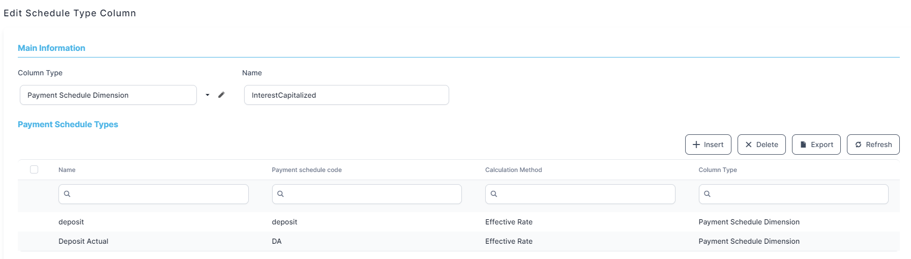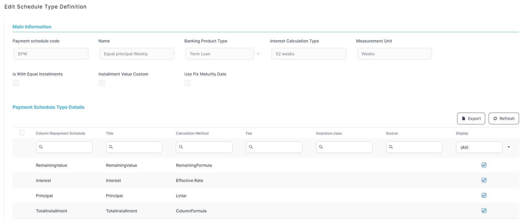 Payment Schedule Type