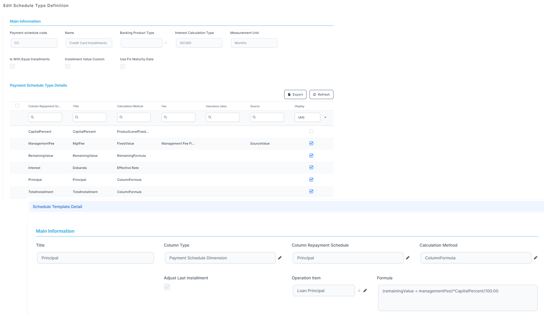 The payment schedules are a quintessential part of a loan. Below you can see how to configure the installments, dates and calculations.