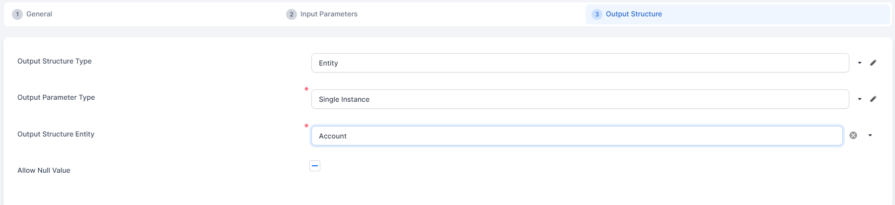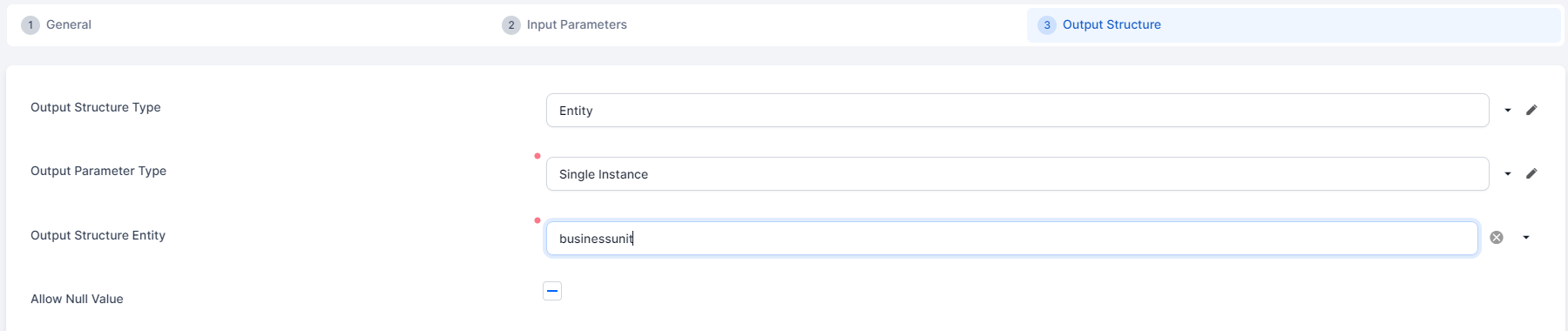 7. If you wish to support null values for the output structure, tick the Allow Null Value checkbox.