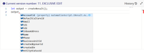 You can customize the script's output structure to enable intelligent code completion for the result passed to the client-side callback function. You can map the output structure to an entity data model, or you can define your own custom structure. Also, you can specify if the output is in the form of a single object instance, or if it is a collection of objects each matching this output structure.