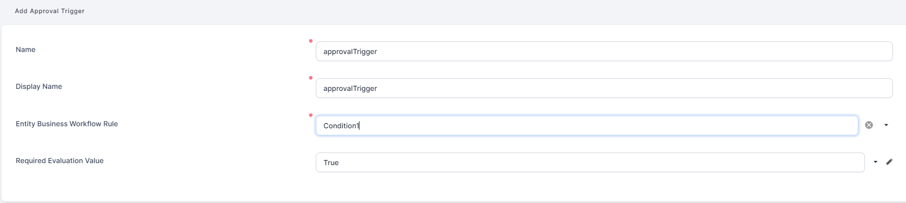 - In the Approval Triggers section, add any business conditions that have to be met to trigger the approval. If this section remains empty, the workflow transition will always require approval.