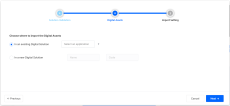 - Digital Assets: specify the destination of the digital assets. Add them in an existing Digital Solution or in a new one. Click Next once done.